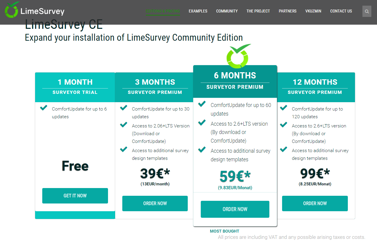 | Description | https://www.limesurvey.org/editions-and-prices/limesurvey-ce/editions-and-prices-community 3 months - 39€ (13EUR/month) "LimeSurvey CE" on the top also looks missplaced | ||||