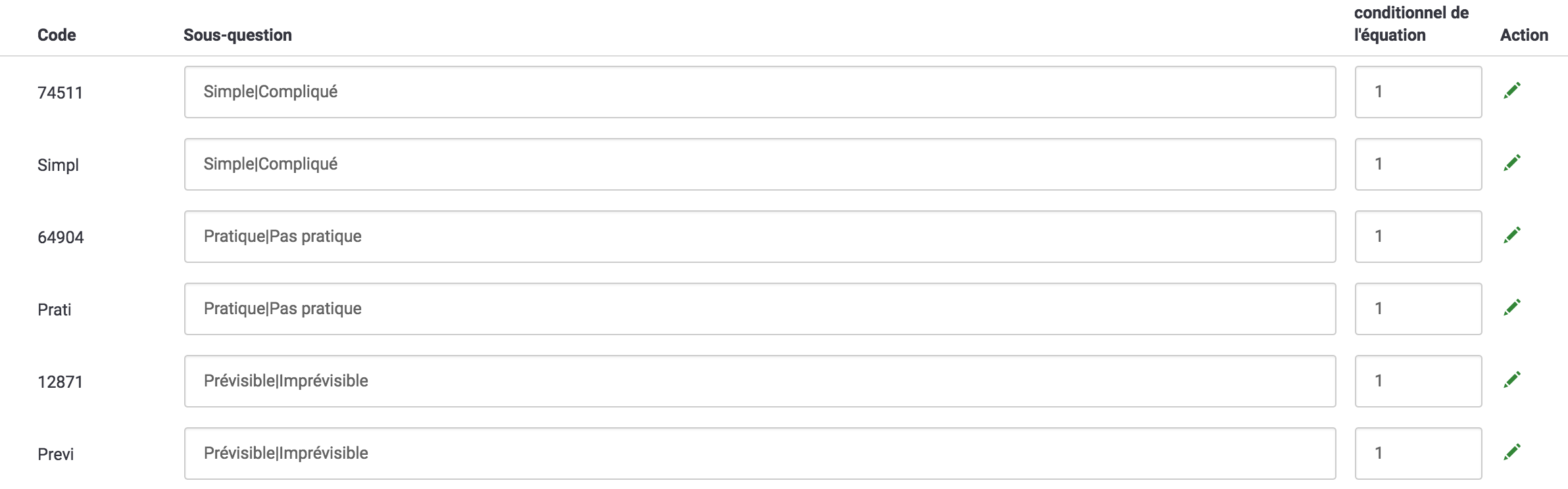 Subquestion text should be "|Simple|Compliqué" and note "Simple|Compliqué". |