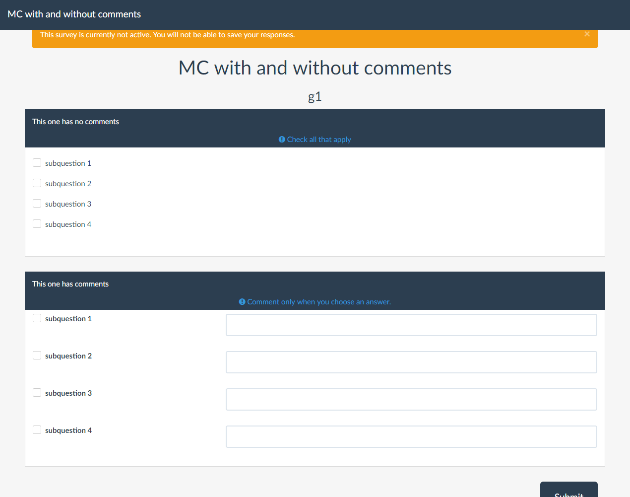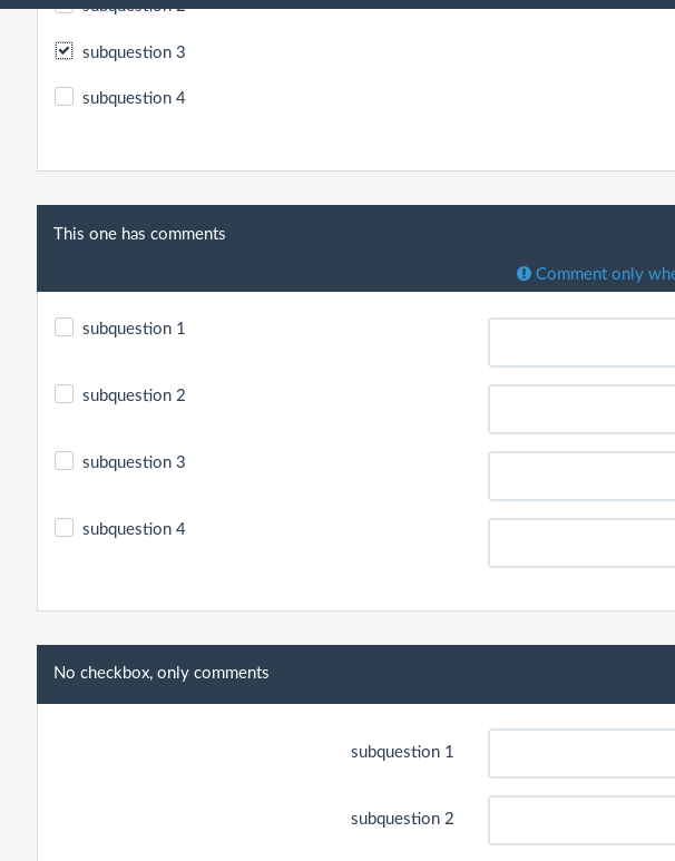 As Denis said: "MC with comment" is really "Multiple texts with checkbox"... Couldn't we use the code base of multiple text for this question type? And add an extra option: add checkbox as an option? |