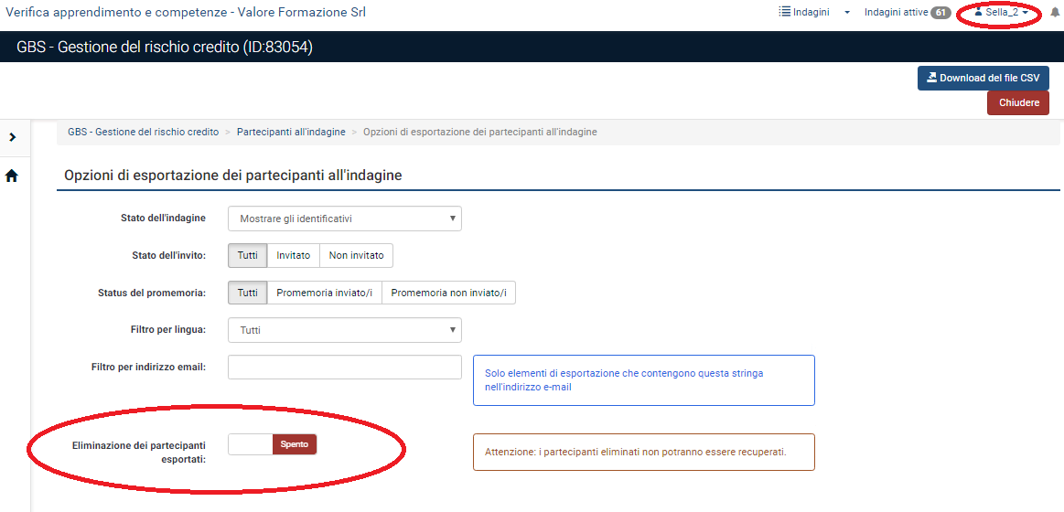 | Description | I gave at "one user" the permission to export partecipants.... (see Permission.png file) if I login with this credential in partecipants menu, inside export-download page, I found that is active the button "Delete exported participants" /see file Exporting_page.png) ...... and if the button is flagged to ON the partecipant exported will be deleted, also the user haven't permission to do it. The users haven't the permission to delete data... | ||||
