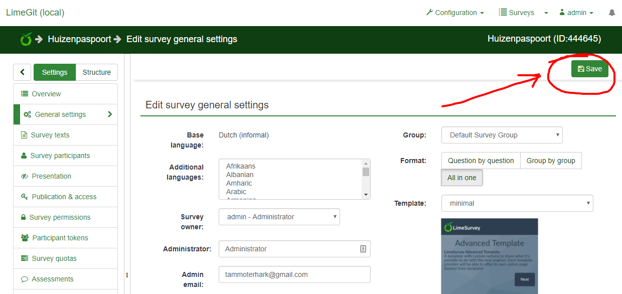 | Description | At least in "General settings" and "Survey texts" | ||||