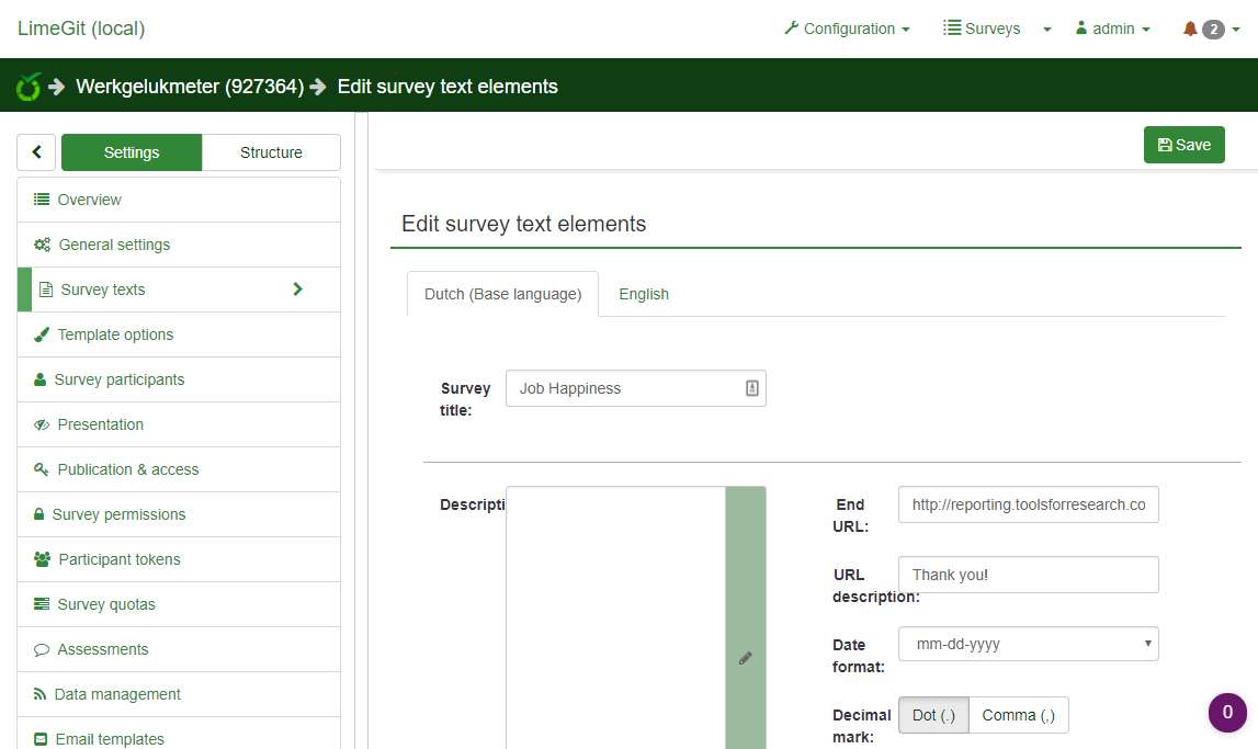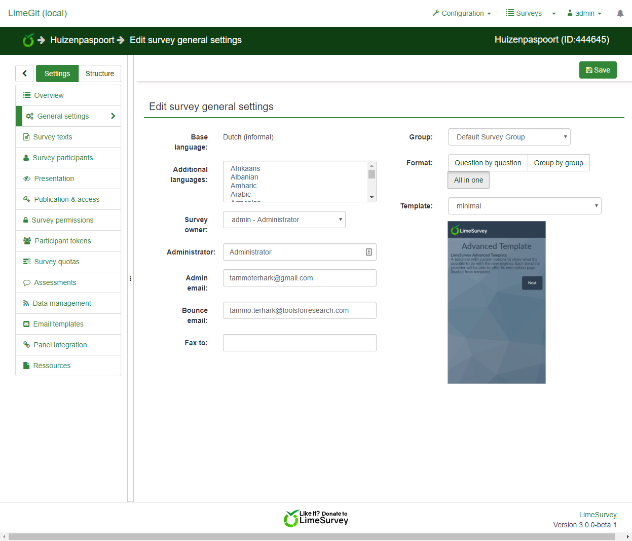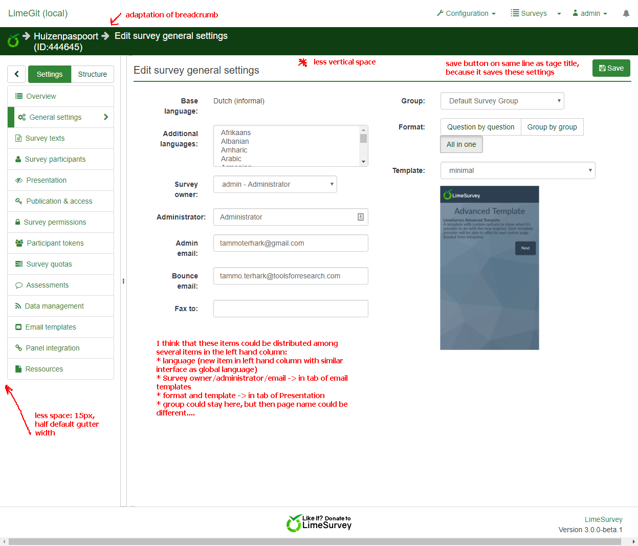 | Complete LimeSurvey version number (& build) | 3.0 beta git | ||||