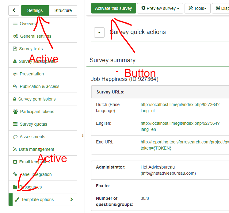 For example: if you want to give the "Activate this survey" button some more "weight" please use: "btn btn-primary" The A-UI should focus on optimal clarity, not on being in one color. | ||||