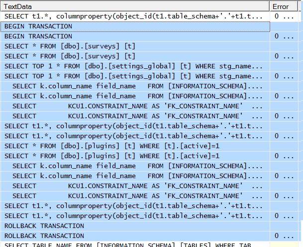 I set up a SQL server profiler trace - the funny thing is no update statements are performed but somehow an exception is thrown resulting in a transaction rollback. See screen shot from profiler. |
