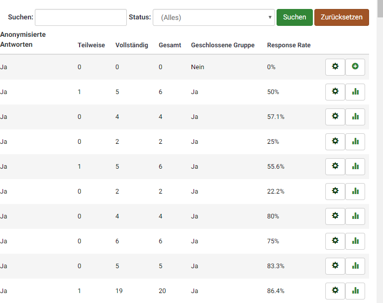 | Summary | 12622: New feature "Response rate" in admin survey list | ||||