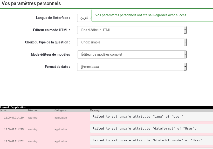 | Summary | 12655: Unable to update lang in Personnal settings | ||||