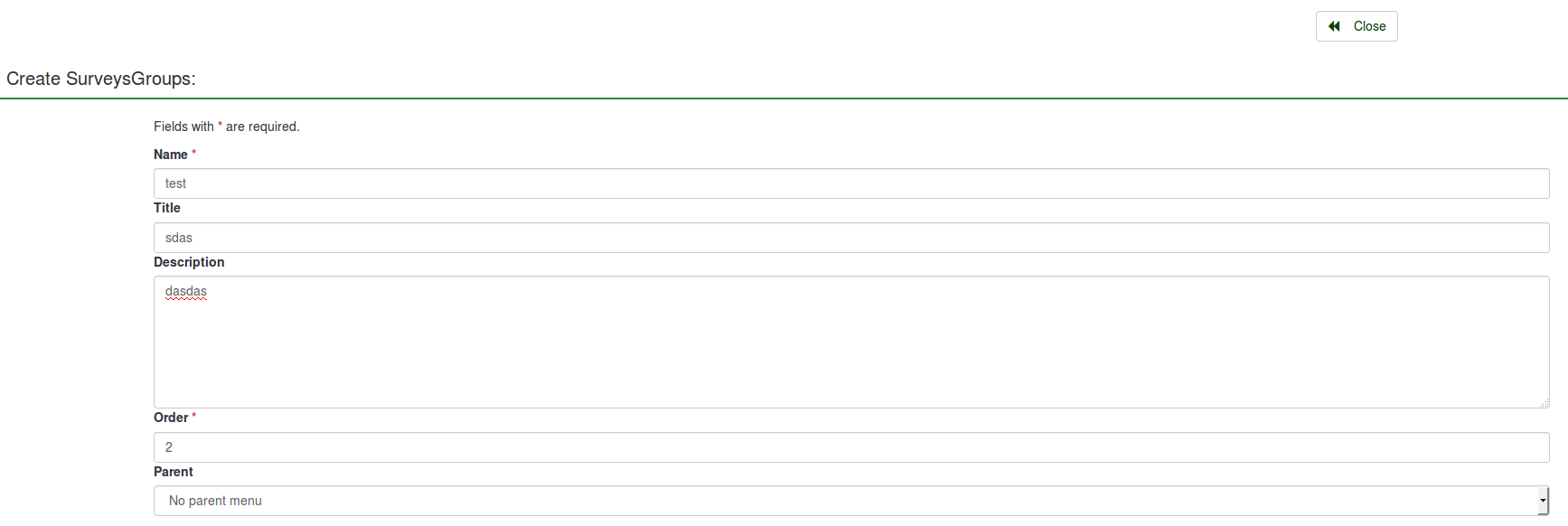 | Description | As it can be seen in the SS, there is no SAVE button in the Survey Group page. Therefore, no survey groups can be created. | ||||