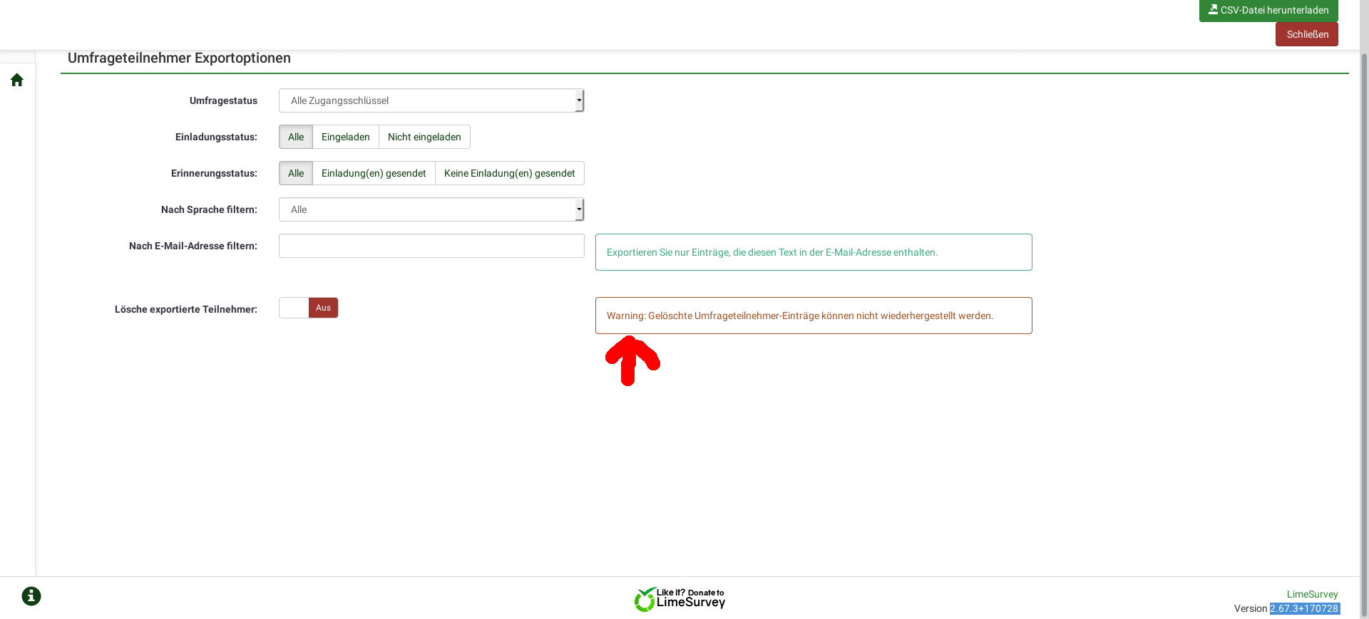 | Complete LimeSurvey version number (& build) | 2.67.3+170728 | ||||