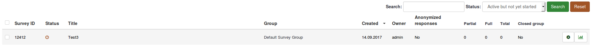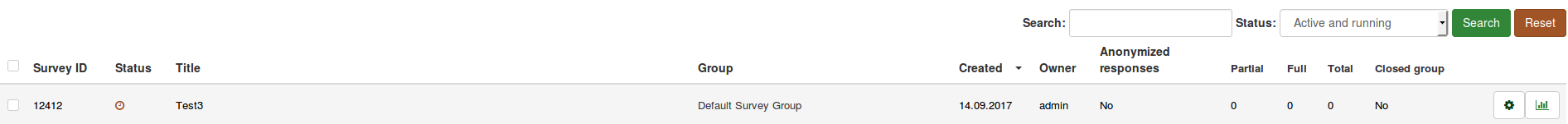 | Description | When I want to filter my surveys list according to "active and running" and "active but not yet started", I get the same results and status icon (the brown watch) | ||||