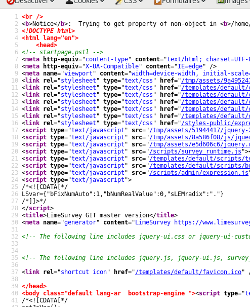 | Steps To Reproduce | Set debug to 2, look at home / survey listing Notice: Trying to get property of non-object in /home/sondages.pro/htdocs/limesurvey_GIT/LimeSurvey/application/models/TemplateConfiguration.php on line 197 | ||||