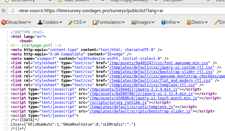 | Description | On survey listing and maybe other place : html have attribute lang="en" even if language is not english. | ||||