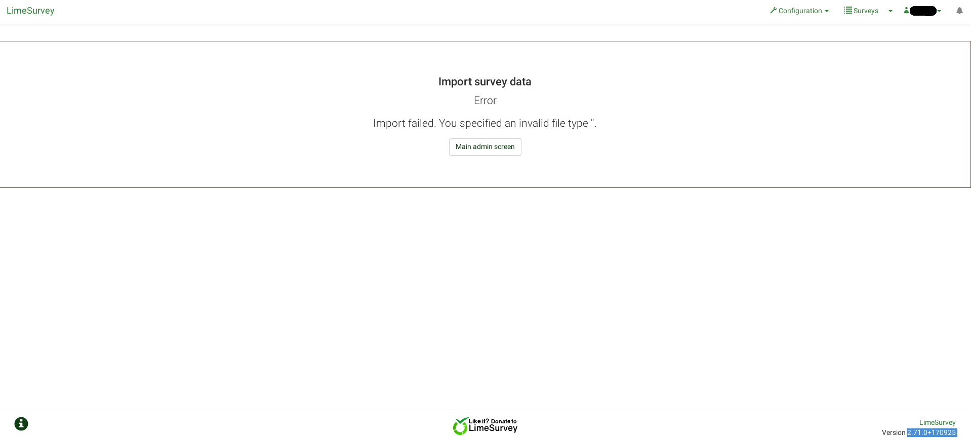 | Complete LimeSurvey version number (& build) | 2.71.0+170925 |