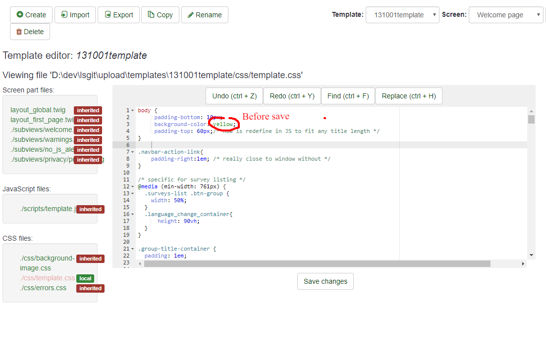 | Summary | 12791: Cannot save template.css in theme editor | ||||