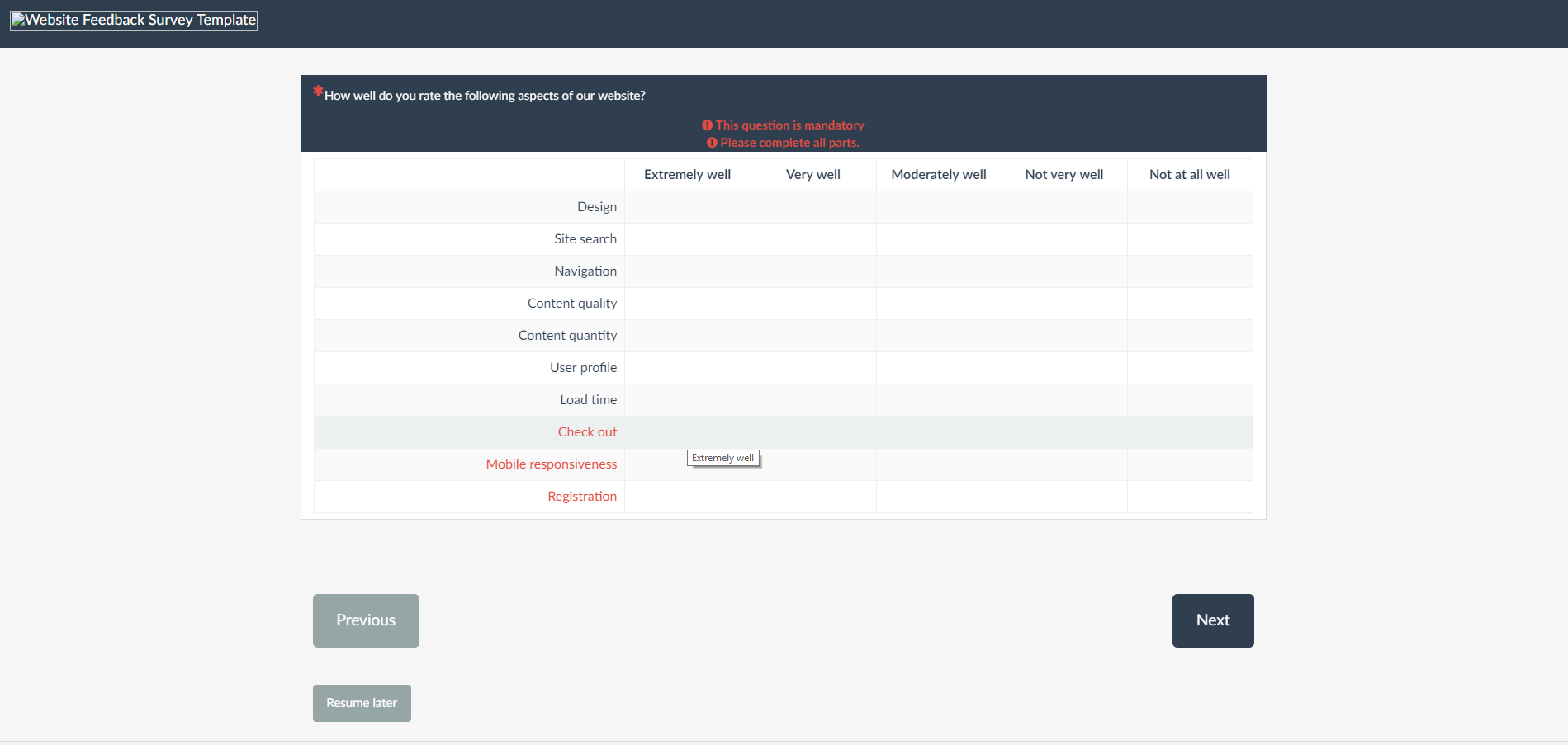 | Description | The selection points in the array question type are practically invisible as they have the same colour as the background of the array table. | ||||