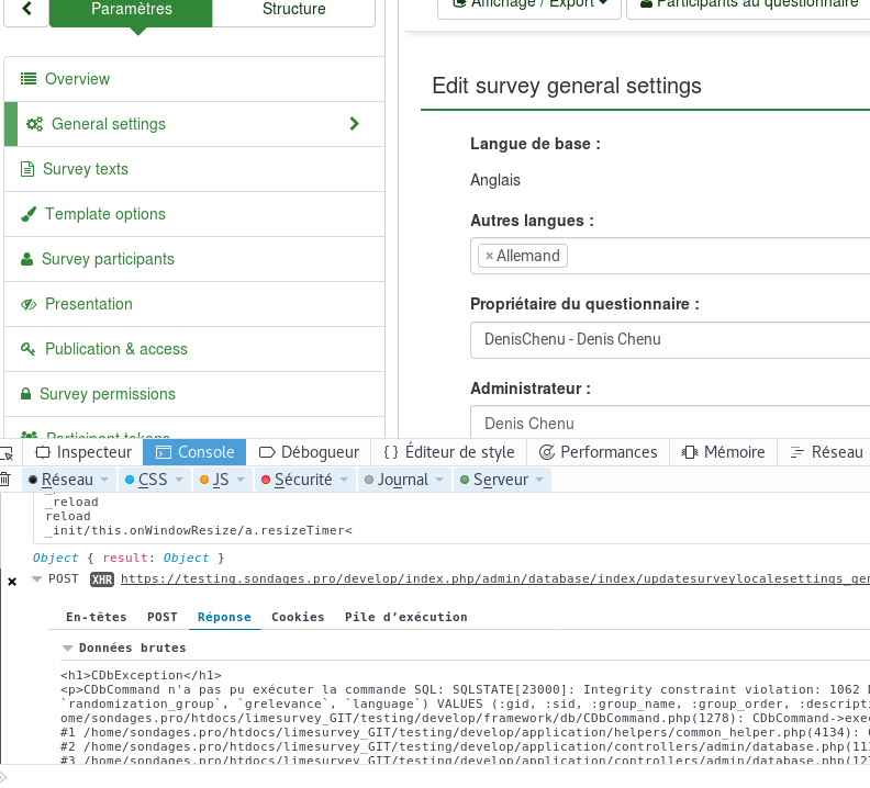 /home/sondages.pro/htdocs/limesurvey_GIT/testing/develop/framework/web/CController.php(286): CController->runAction(SurveyAdmin)