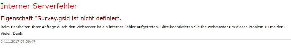 | Steps To Reproduce | I just upgraded my 2.7. version (in my "test enviroment") through comfortUpdate to 3.0-rc . The installation went ok, no error messages. The administration overview is ok and I can enter global function, template editor, but when I want to open my surveys or create a new one, I get an internal failure message (see attached). Any ideas what this could be? | ||||