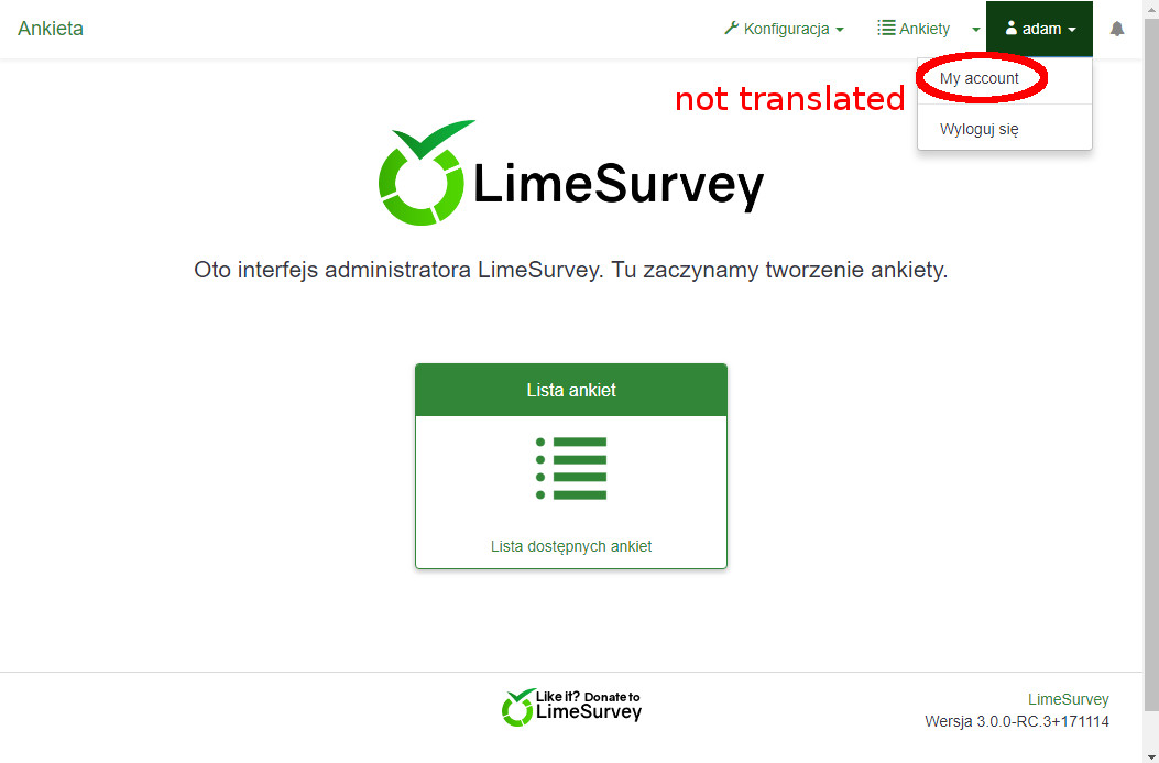The "My account" is not translated (e.g. in the Polish version). |