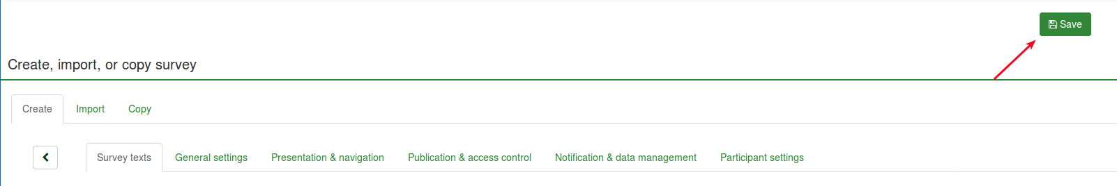 | Description | The save button does not work in the create survey panel. When I click on it, nothing happens. | ||||