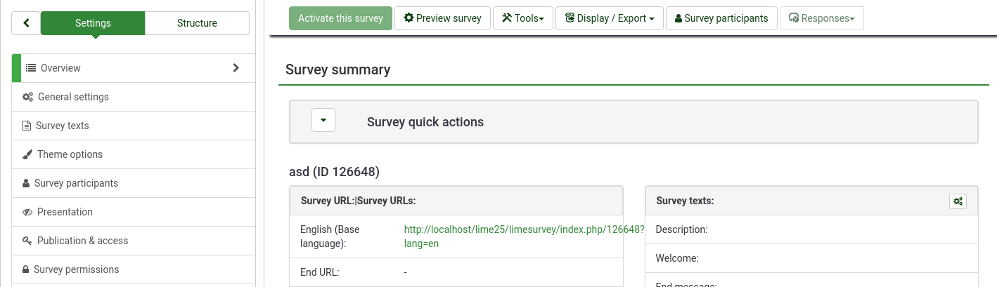 | Complete LimeSurvey version number (& build) | latest dev | ||||
