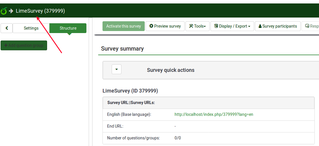 | Description | I created a new survey. When I click on LimeSurvey (37999), the background gets darker and nothing happens (have to refresh the page) The same happens if i want to click on any other option from the survey structre/settings menu. First, the page gets a dark background... and only a page refresh can solve the problem. | ||||