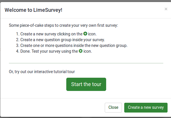 You could also give a try to our interactive tutorial tour if you wish to find out more about the basic functions and features of LimeSurvey. (or at least smth similar) | ||||