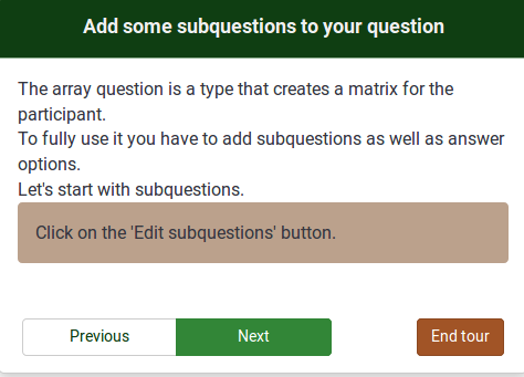 | Summary | 13040: Tutorial - text - Add some subquestions to your question | ||||
