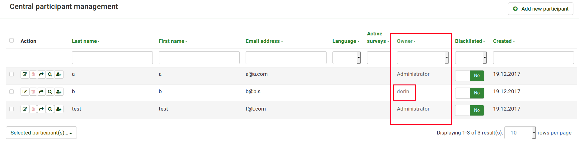 | 13057 | Bug reports | Central participant database | public | 2017-12-19 10:18 | 2018-02-19 15:06 |
