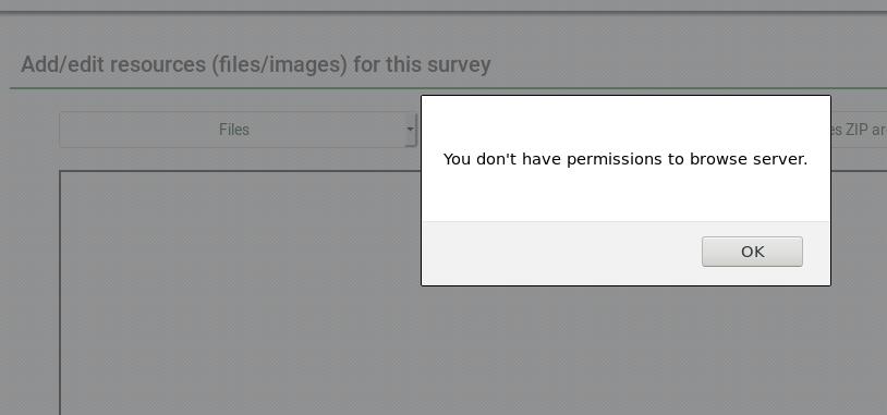 | Additional Information | With same survey, goes to edit any question, add an image : Settings/Ressources work as expected. Doing this way create the directory. At foirst time we surely don't have the upload/surveys/sid/ | ||||