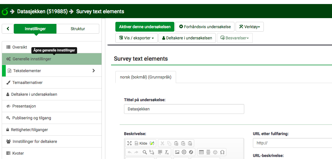 Hello pmonstad in the new version of LimeSurvey, you can define and assign the names to each of the menu items, enter in the options configuration -> Menu Entries Configuration, then select the menu item than you want to change and press the edit button, then change the title of the menu and ready, I hope my answer works. regards |