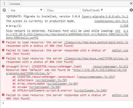 then i checked the folder that says its not found. It really is not there. then i tried to install a new limesurvey from scratch and it's still the same. i can't seem to find the files that the console was referring to. |