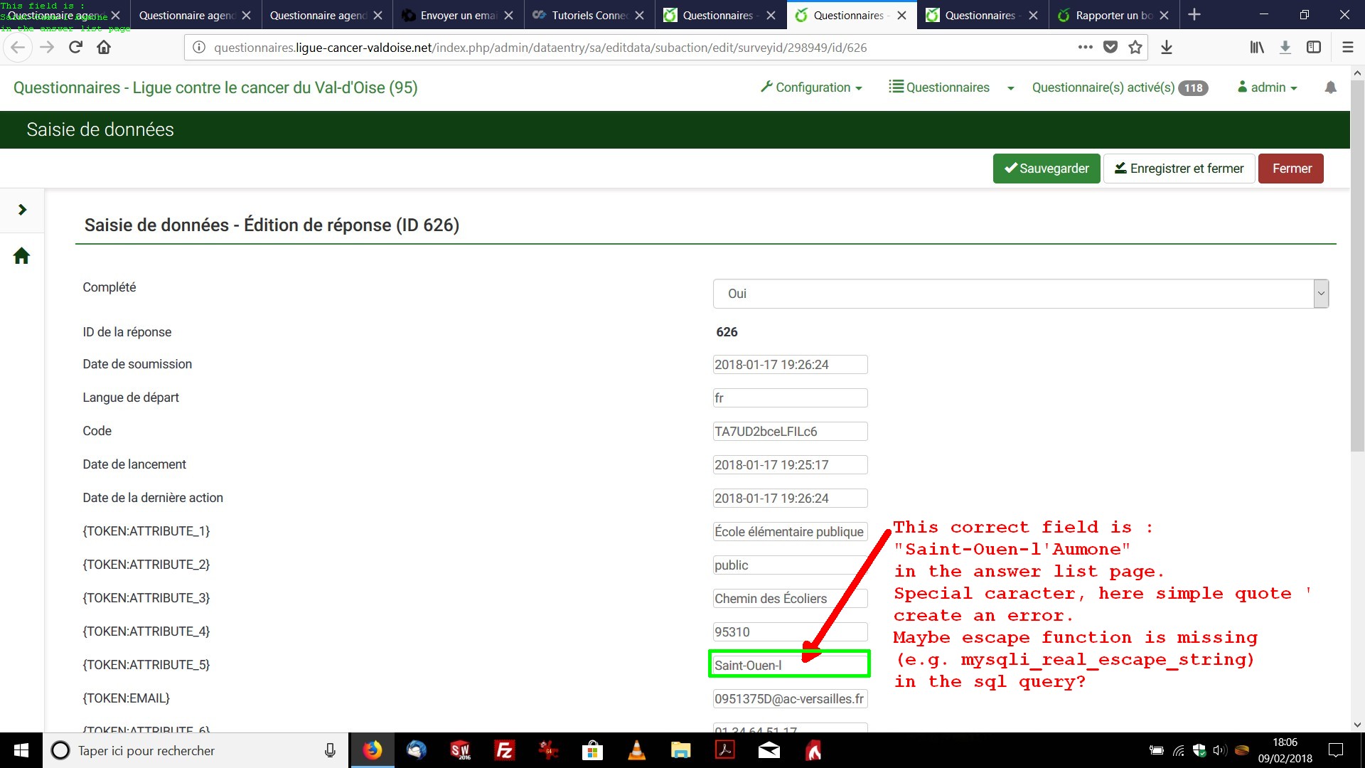 | Summary | 13327: Error when manually editing an answer with a special character (simple quote) | ||||