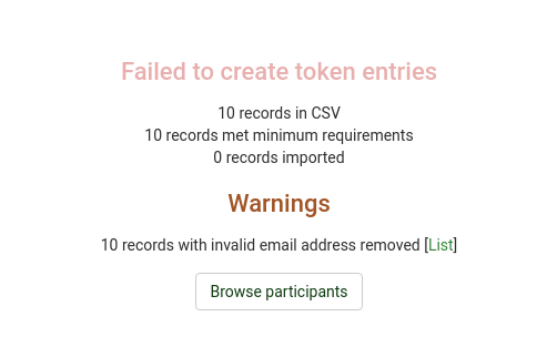 | Steps To Reproduce | Create a survey, set up it to use a token table and create a small tokens.csv-file containing firstname;lastname;email;token in excel and upload it to the token table, zero participants will be imported. | ||||