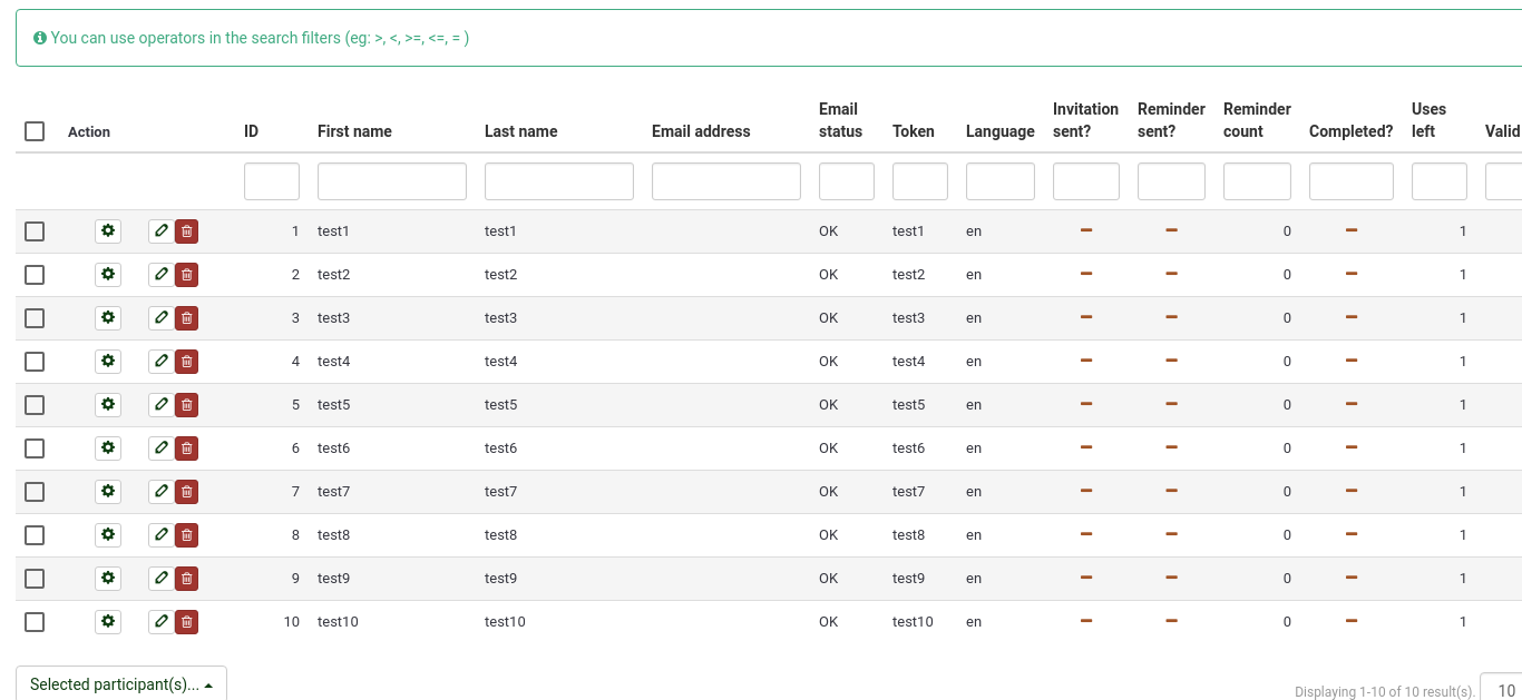 firstname;lastname;email;token test1;test1;;test1 test2;test2;;test2 test3;test3;;test3 test4;test4;;test4 test5;test5;;test5 test6;test6;;test6 test7;test7;;test7 test8;test8;;test8 test9;test9;;test9 test10;test10;;test10 | ||||