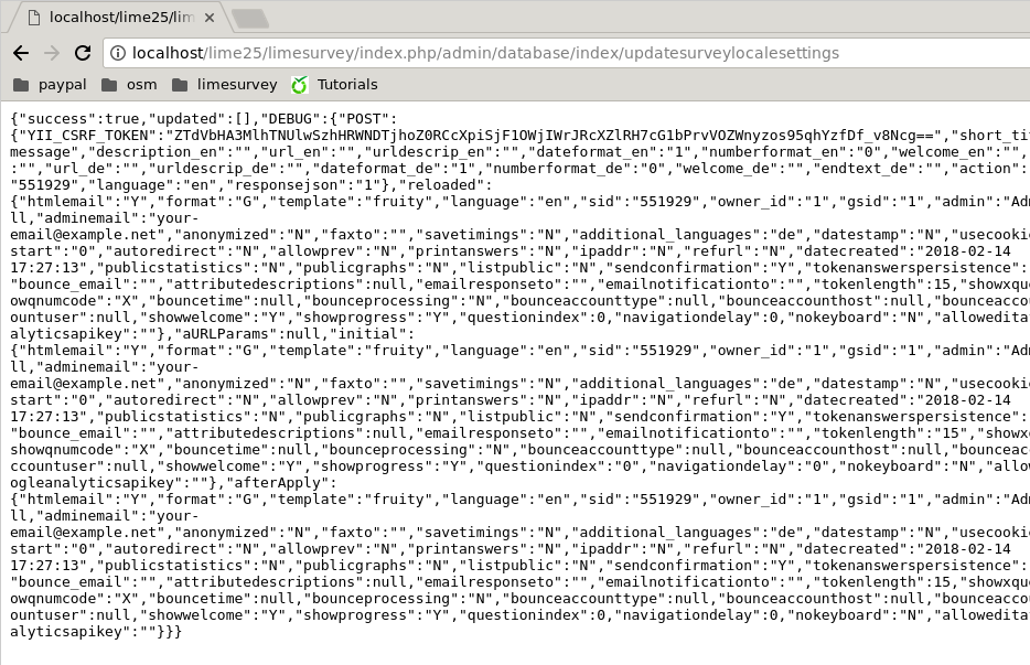 | Summary | 13355: Saving German survey title shows JSON output | ||||