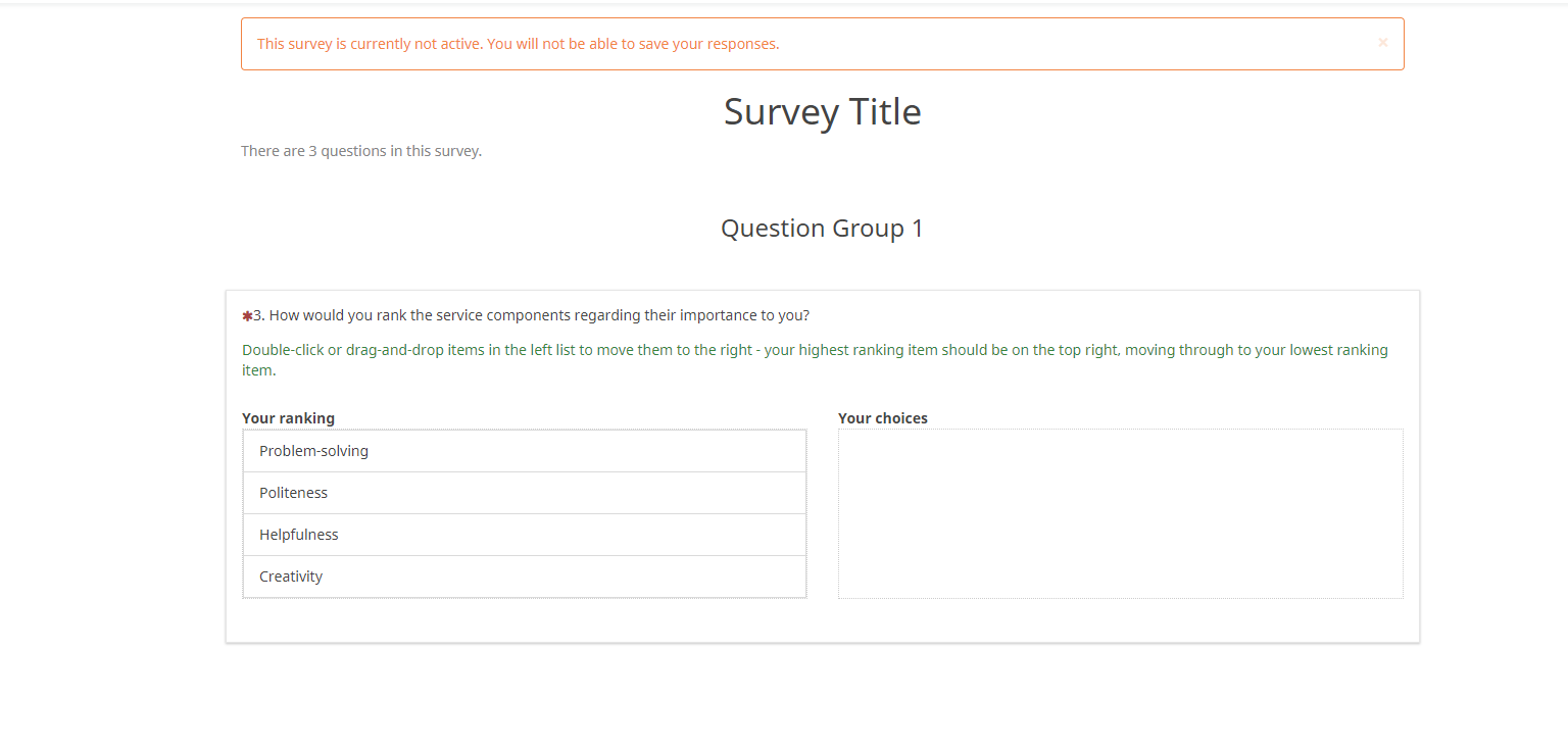 | Description | Column names in Ranking QT need to be switched: Your Choice ought to be left column and Your Ranking ought to be right column. | ||||