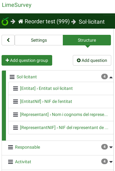 | Summary | 13419: Re-ordering questions and groups using Structure drag & drop fails | ||||