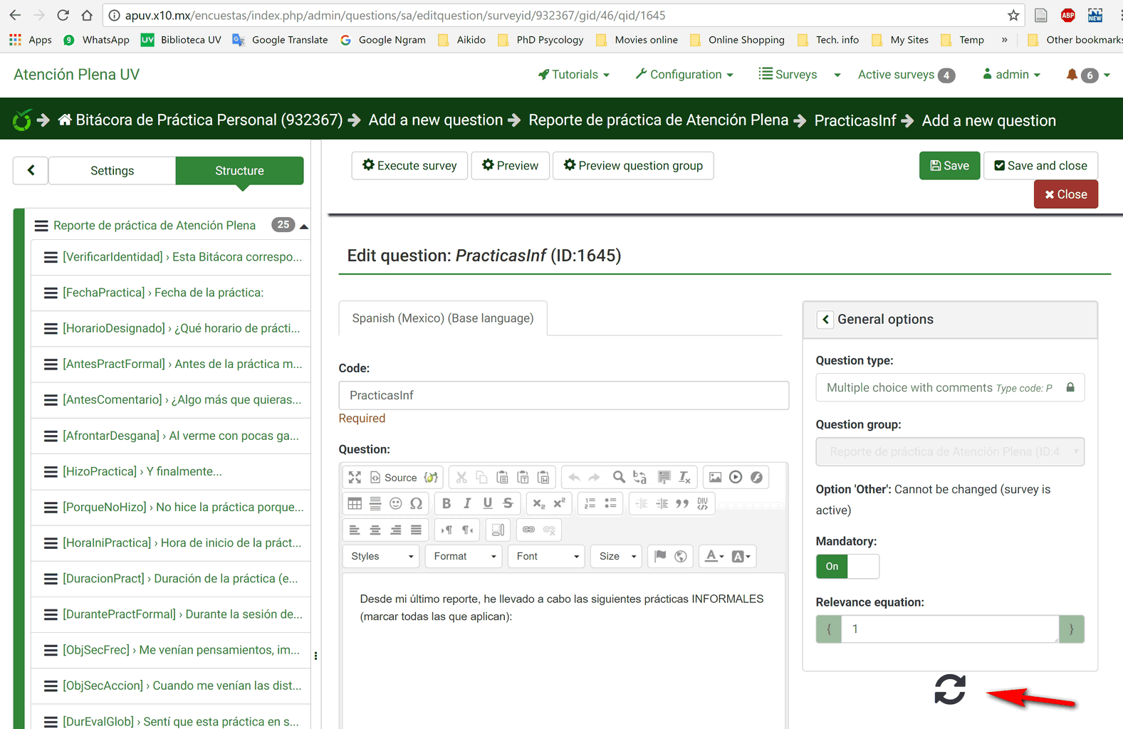 | Description | This just started happening yesterday: all of a sudden, I can no longer edit questions properly, because when I try to open the Edit panel, the question attributes don't load completely. Instead, a spinning wheel symbol appears right under the General Options section (see attached screenshot). This only happens on my internet server; on my local PC, the edit panel comes up properly (I am running the exact same LimeSurvey version, v3.5.1+180312, in both places). It looks like this has something to do with the server, but I can't figure out what. Everything else seems to be working fine, and respondents are filling out the surveys without any apparent problems. I have tried accessing the site from both Chrome (without the ad blocker) and Edge, and the problem happens on both of them. | ||||