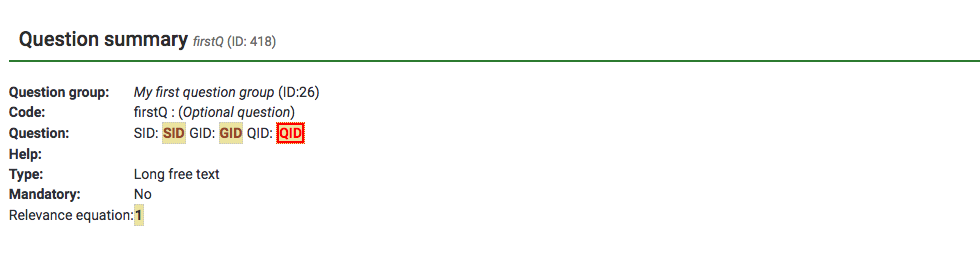 | Description | Based on the bugreport 13230, I was told to open a new one. GID seems to be only shown in the first question of a group. After that the GID is empty. | ||||