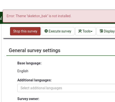 | Additional Information | Previuosly : we fix template when loading Survey directly : https://github.com/LimeSurvey/LimeSurvey/blob/2.73/application/models/Survey.php#L361 It's not the case now, but it's really needed in lot of case because it can totally broke survey The commit remove this line was here : https://github.com/LimeSurvey/LimeSurvey/commit/40822e6d046744a455f17a44cc2cdafe84cf9a11#diff-7cc4f9528d95baae77c523d3532c1a19L406 If it's default template broken : complete default template happen only one time. | ||||