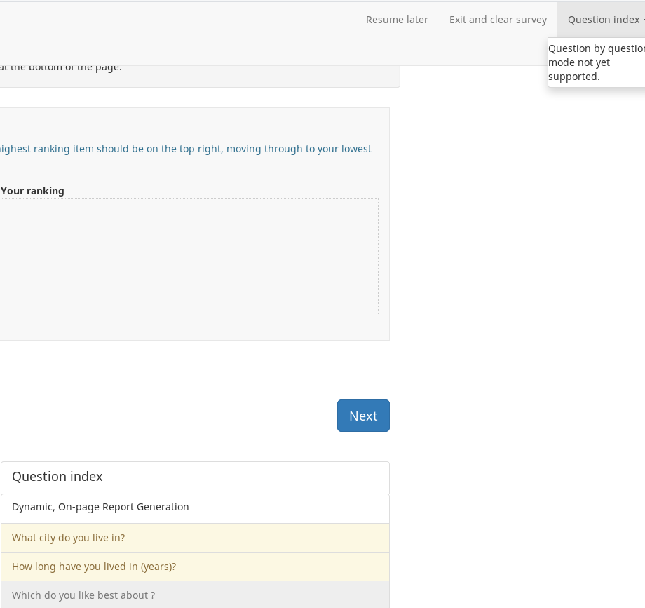 | Description | Whan activate Question index in Question by question mode : show "Disable", but it work in incremental mode | ||||