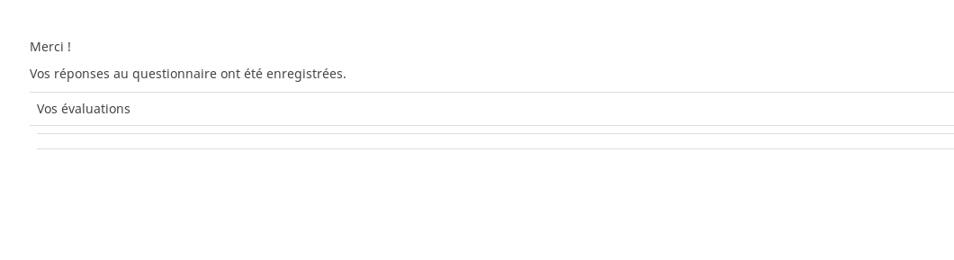 | 2018-04-04 18:00 | DenisChenu | Summary | Final assesments are shown even if empty => Final assesments are shown even if no assessemnt is set |