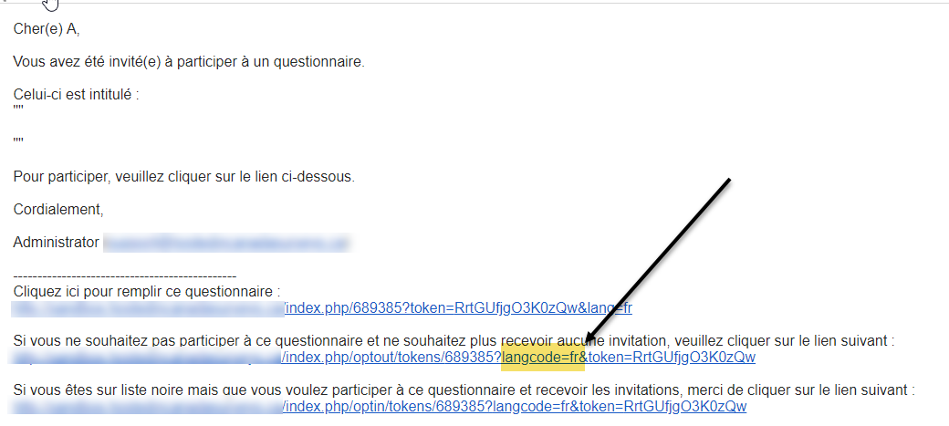 I'm running 2.7.x and I see that the OptOut page text is in English, even though the URL is : /index.php/optout/tokens/689385?langcode=fr&token=RrtGUfjgO3K0zQw Specific texts are: Please confirm that you want to opt out of this survey by clicking the button below. After confirmation you won't receive any invitations or reminders for this survey anymore. I confirm. I've attached screen shot of the email with the French lang tag, and the on-screen opt-out message. |