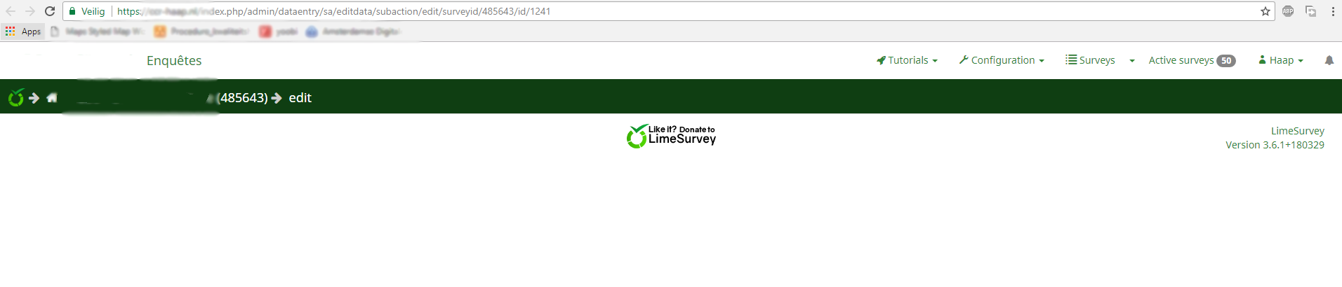 LS.data = {"baseUrl":"https:\/\/xxxxxxxxx.nl","showScriptName":true,"urlFormat":"path","adminImageUrl":"\/themes\/admin\/Sea_Green\/images\/","csrfToken":"V3ZZYjBUd1ZjTGV-bldpY2NzS3ZPWF9KRWc1bEl1OEbZNpzPiJ-Bu78xBAI5ZphxJrO8mrQbkZxqyVyx7B2Vgw==","language":"en","replacementFields":{"path":"\/index.php\/admin\/limereplacementfields\/sa\/index"}}; /]]>/Please find attached the page source of the entire page (sanitized for my url and some other personal stuff). I don't really know what I should be looking for. As you can see though, all information is there. It somehow just isn't shown/ it's hidden. This appears to be related to the new screen it is opening in. When I checked for a very simple sample file, it appears to be working normaly. |