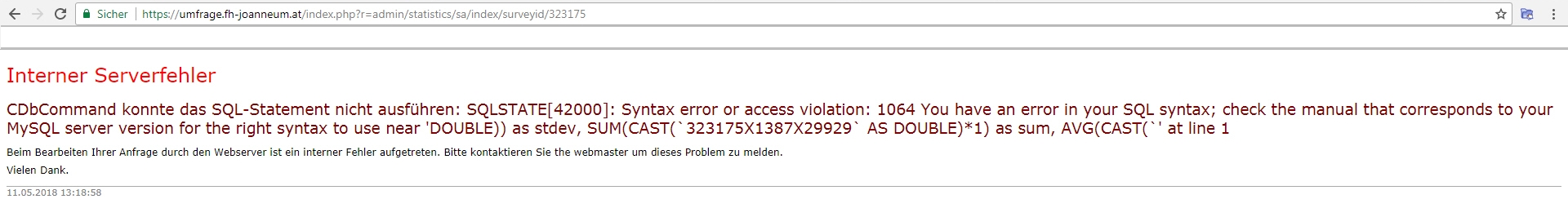 | Complete LimeSurvey version number (& build) | Version 3.7.2+180508 | ||||