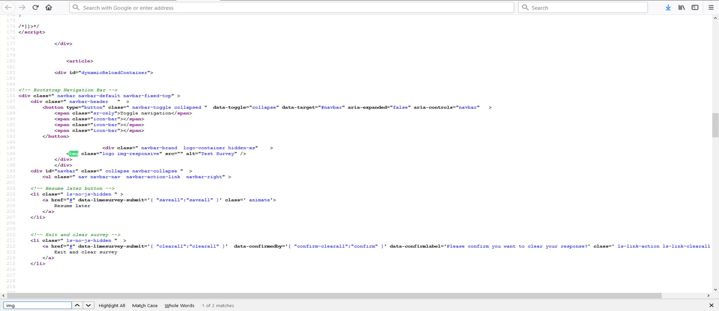This is what I got so far with logo option "on". <img class="logo img-responsive" src="" alt="Test Survey" /> |