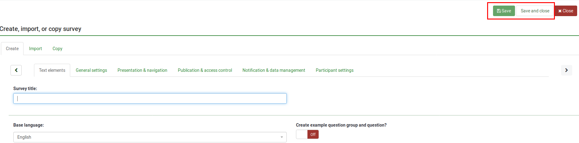 | Summary | 13685: Create a new survey - Save and Save and close -> same behavour | ||||