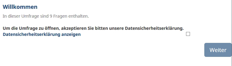 | Summary | 13688: privacy policy are hidden on the startpage of a survey, when the first action is a mouseover over the Button WEITER | ||||