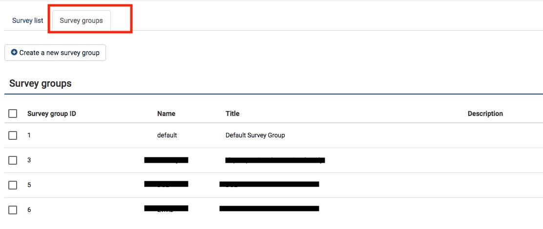 | Description | A user admin with permissions to access only one survey can click on the Survey groups tab and see all the survey groups. In the example, the user has access only to one survey that belongs to one group, but he is able to see all the rest of survey groups in the system | ||||