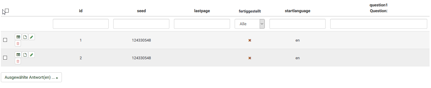 Ok, so I import that survey, activate it and start it once, select anything for the first question. Response saved here, no problem. |