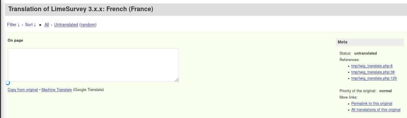 | Steps To Reproduce | https://translate.limesurvey.org/projects/limesurvey-3/fr/default/ first line, click on references link Look at screenshot | ||||